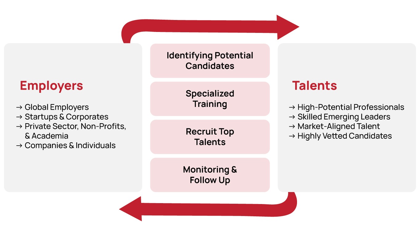 - Qualified and Specialized Talent: Access a pool of skilled, bilingual youth. Employers may also request specific skills that Jusoor can train talent in prior to their joining your team.